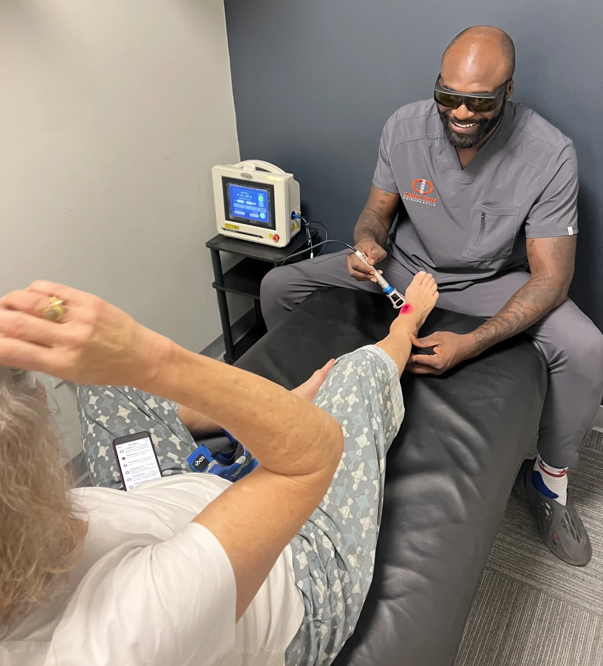 - Comprehensive Approach: Chiropractic care at Carpe Diem Chiropractic focuses on spinal alignment and nervous system balance, while laser therapy targets inflammation and deep tissue pain. Together, they provide a complete, evidence-based approach to healing, recovery, and long-term wellness.